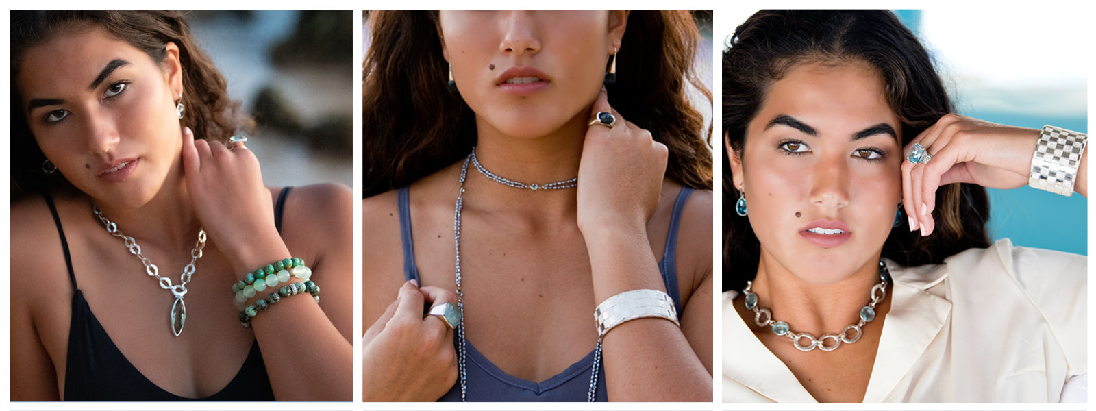 KenSu Jewelry emphasizes the wear-ability of its designs, even when working with materials that verge on excessive. Known for its larger more bold hand hammered cuffs and semi precious stone necklaces, rings and earrings. Opting for Elegant power pieces over dainty. KenSu Jewelry pursues an aesthetic of simple elegant beauty.